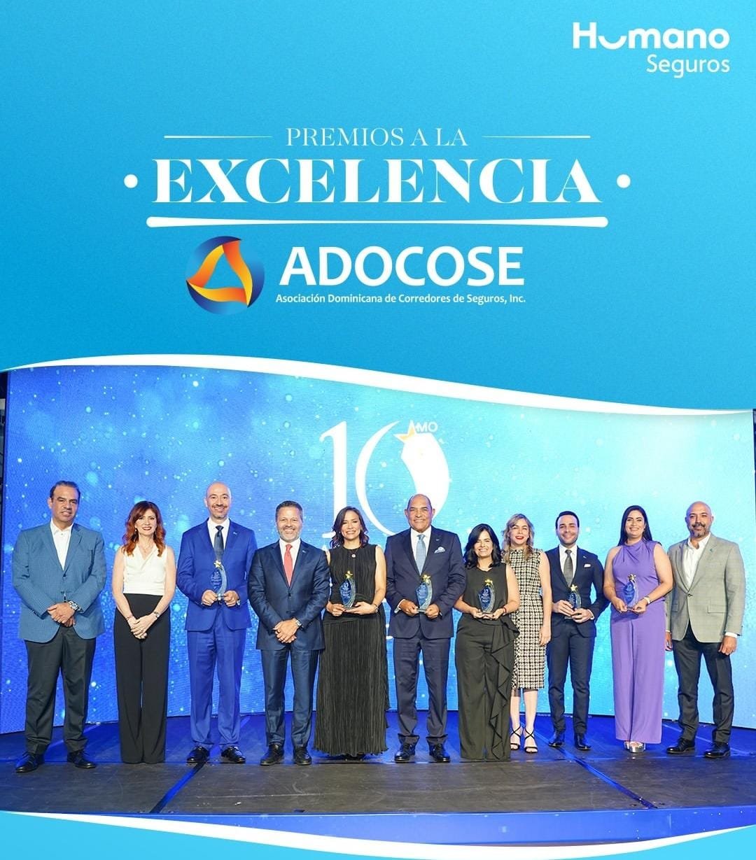InfoSalud/ Santo Domingo, D. R. – 10 de diciembre, 2025.- Humano Seguros ha revalidado su posición de liderazgo en el mercado de seguros dominicano tras una noche histórica en los prestigiosos Premios Adocose Santo Domingo. La compañía fue la más galardonada del evento, alzándose con un total de seis premios, un logro sin precedentes que subraya su compromiso inquebrantable con la excelencia y la innovación en seguros de salud para la República Dominicana.