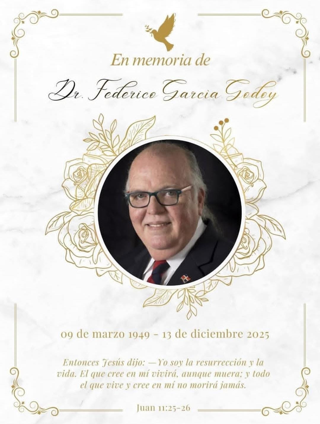 En este momento de duelo, elevamos nuestras oraciones por el descanso eterno del Dr. Federico García Godoy y abrazamos con cariño a su familia y seres queridos.