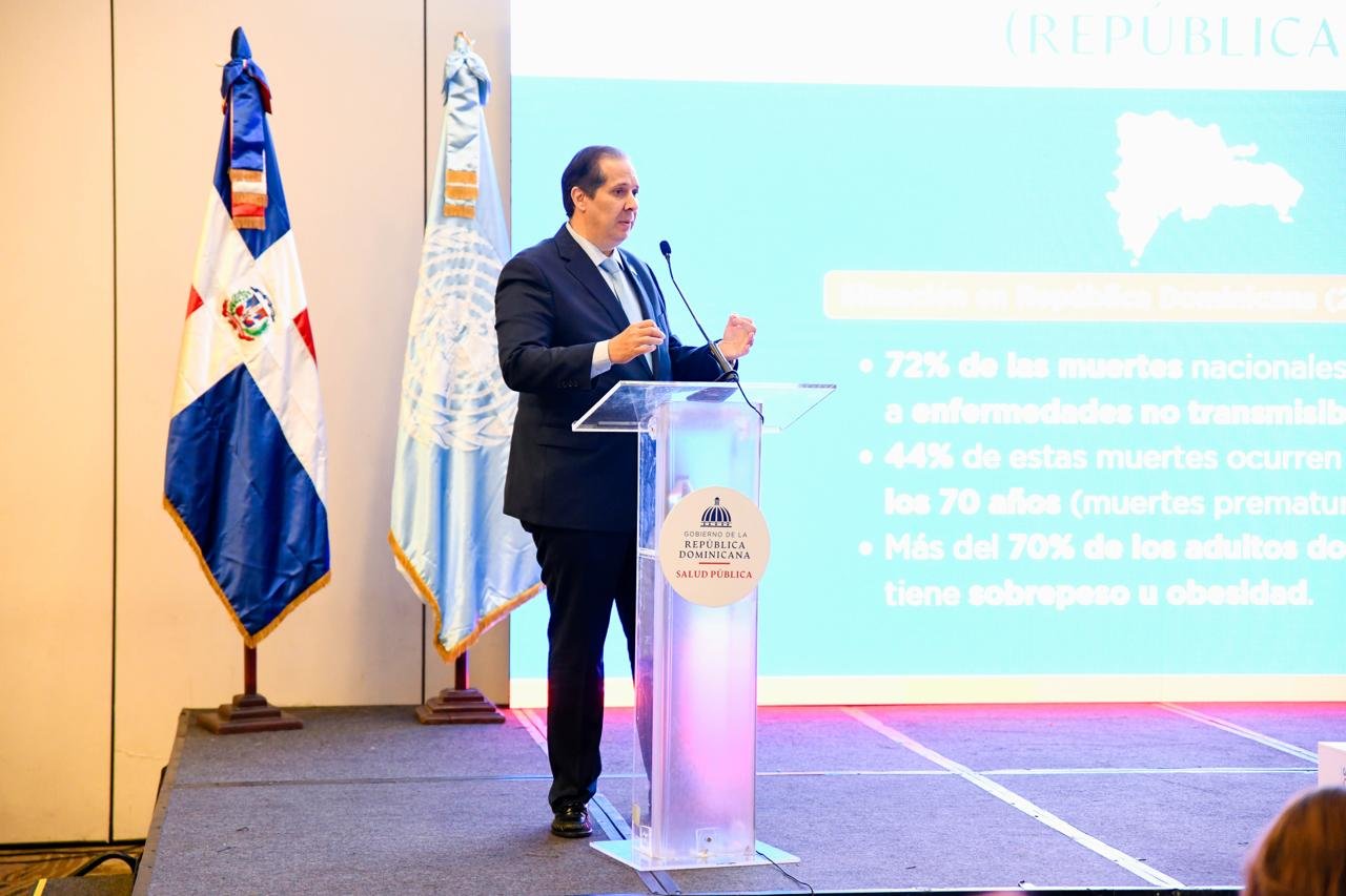 En sus palabras centrales, el ministro de Salud, Víctor Atallah, destacó que más del 72% de las muertes en República Dominicana se relacionan con enfermedades no transmisibles (ENT), de las cuales el 44% ocurre antes de los 70 años.
