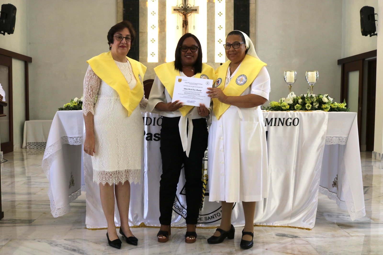 En su intervención durante la ceremonia, sor Trinidad Ayala Adames, coordinadora de la Pastoral de la Salud, expresó: “Este diplomado reafirma nuestro enfoque con la humanización de los servicios de salud, un llamado que nace del Evangelio y que busca dignificar la atención a los más vulnerables. Felicitamos a cada uno de los graduados por su esfuerzo y dedicación.”